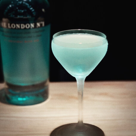 5 cl London Gin No1 0,5 cl Schladerer Himbeergeist 1 cl Agave 1 cl Zitronensäure 1 BL Liqueur de Violette